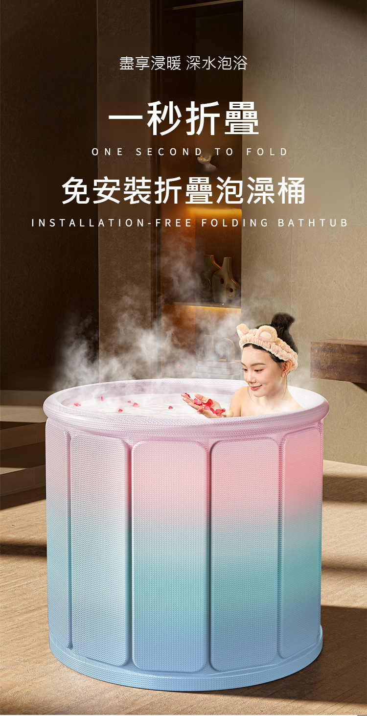 【3小時長效鎖溫】加厚折疊泡澡桶